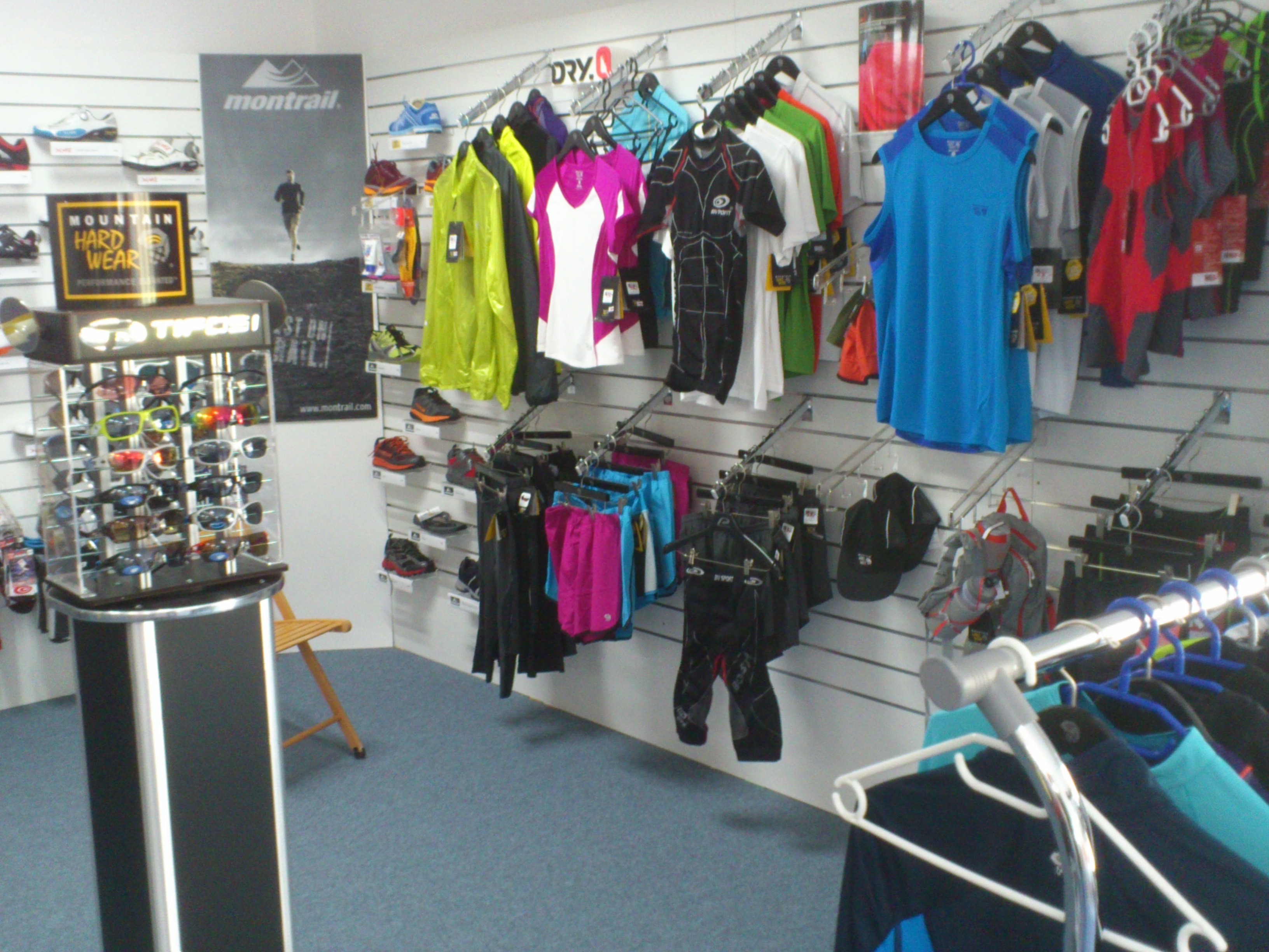 Im Sortiment ist natürlich auch Sporternährung von Ucan und Hammer Nutrition, Rad- und Triathlonbekleidung von Castelli, Lauf- und Radbekleidung von Löffler sowie Triathlonkleidung und Neoprenanzüge von Huub. Letztere können wie die Neoprenanzüge von Orca im hauseigenen Gegenstrombecken testgeschwommen werden. Ebenfalls im Gebäude befinden sich die Leistungsdiagnostik und das Höhentraining.