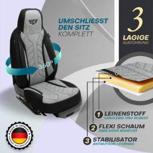 Maßgenaue Passform: Unsere Sitzbezüge sind speziell auf die Bedürfnisse moderner Fahrzeuge abgestimmt.